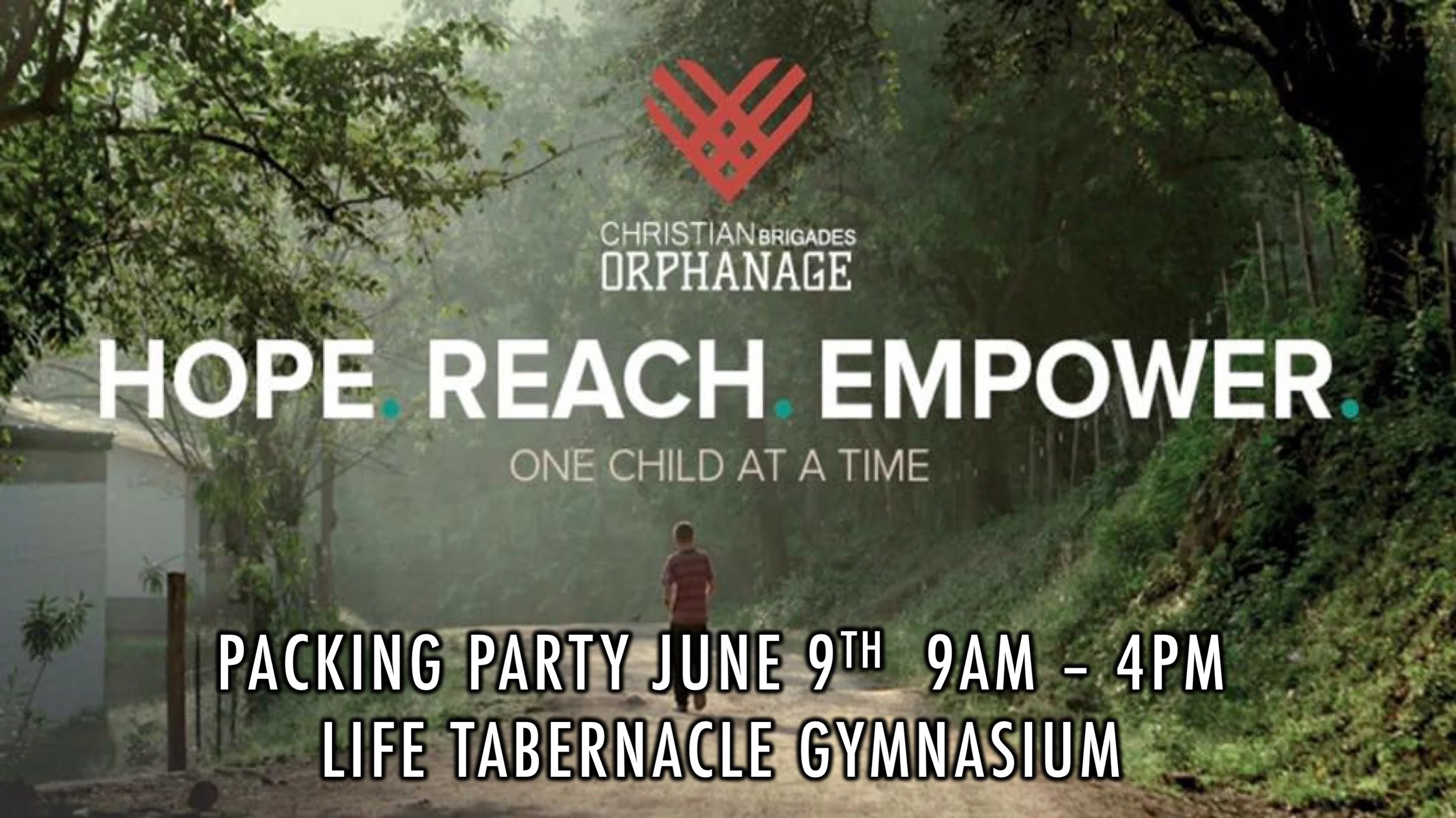 Christian Brigades Orphanage - Packing Party Saturday, June 9, 2018 9:00 AM 4:00 PM 09:00 16:00 Life Tabernacle - Gymnasium 13223 E Beaty Ave Whittier, CA 90605 (map) Google Calendar ICS