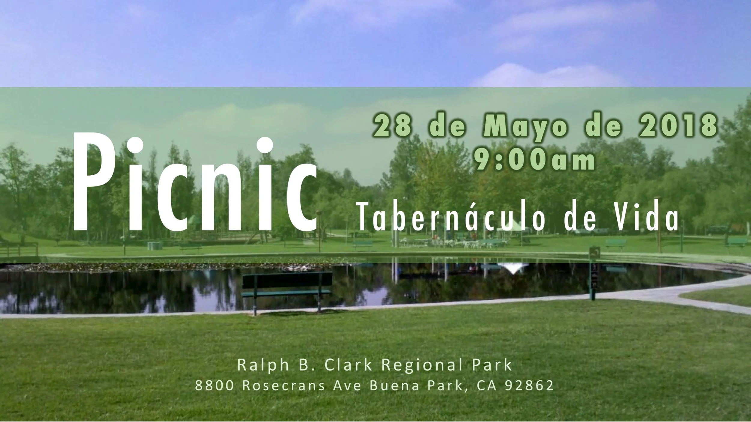 Picnic del Iglesia Monday, May 28, 2018 9:00 AM 5:00 PM 09:00 17:00 Ralph B. Clark Regional Park 8800 Rosecrans Avenue Buena Park, CA, 92862 United States (map) Google Calendar ICS